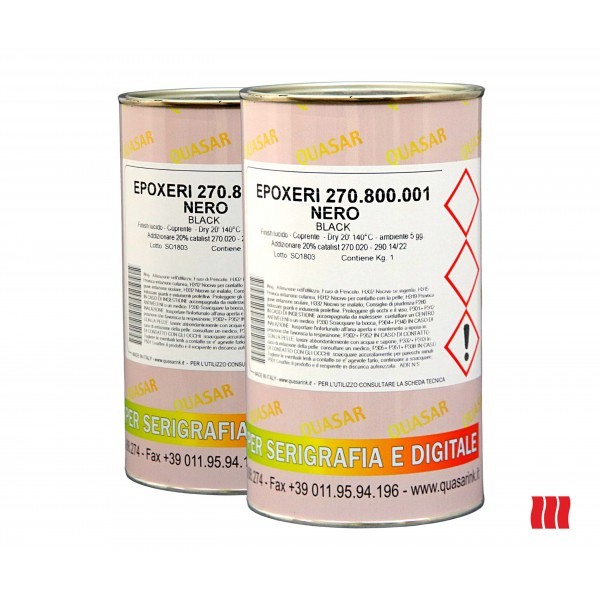 Inchiostro epossidico a solvente 1kg, colore bianco o nero. E' necessario acquistare il catalizzatore Epoxery Solvent Catalist per la stampa su vetro, ceramica e metalli.